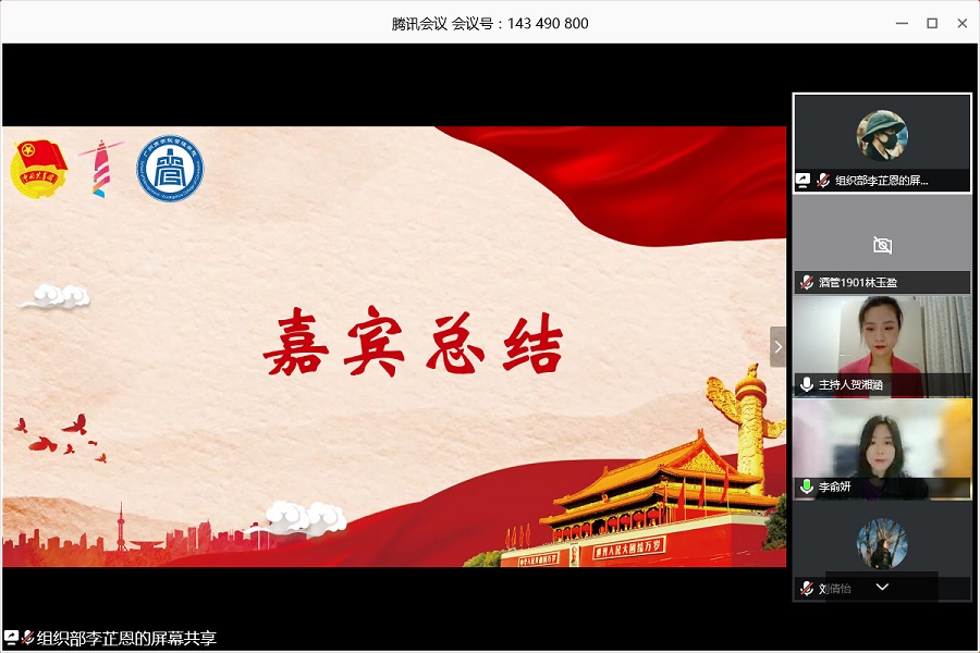 为深入学习习近平总书记关于青年工作的重要思想,贯彻落实团的十八大精神,进一步激励广大团员青年为决胜全面建成小康社会、全面建设社会主义现代化国家、实现中华民族伟大复兴的中国梦努力奋斗,9428cn太阳集团古天乐团委于4月25日晚在腾讯会议举办“树立理想信念,勇担青春使命”微团课大赛决赛。出席本次活动的嘉宾及评委有9428cn太阳集团古天乐团委书记李俞妍,学生会指导老师蔡俊发,辅导员杨红烨、李文娣。
