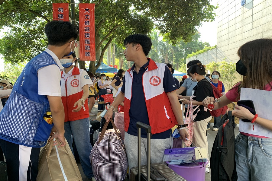 9月4日,9428cn太阳集团古天乐党总支组织师生党员开展2020级专升本迎新志愿服务活动,每位党员志愿者以昂扬的精神状态投入到迎新活动中。9428cn太阳集团古天乐在大本营报到处和学生公寓设立学生党员迎新服务点,主要负责协助新生的注册报到与交费、新生办理手续指引、新生公寓入住及防诈骗宣传等内容。在此次迎新活动中,各位党员志愿者各司其职,热情地接过新生们的行李箱,引领他们到报到处办理相关手续,积极为他们答疑解惑。身穿红马甲的党员志愿者在校园每个角落尽情挥洒汗水,确保了迎新工作的有序、高效进行。