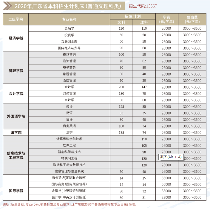 2020年广州商学院广东省招生计划表