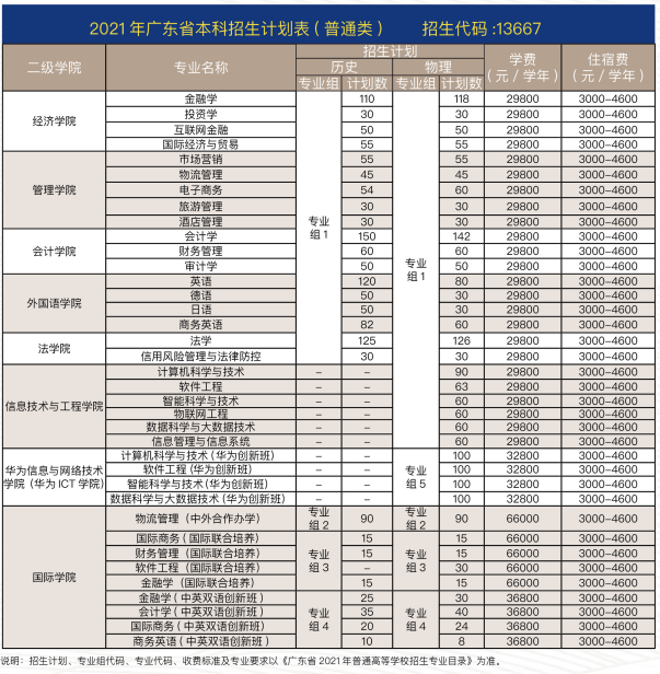 2021年广州商学院招生计划表